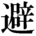 {動}さける(サク)。向かってくる勢いをまともに受けずに、横にひらいてそらす。敵や災いなどをよける。「回避」「避難」「避水火也=水火ヲ避クルナリ」〔→孟子〕