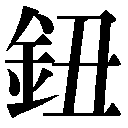 会意兼形声。「金+音符丑チュウ(ひねって曲げる)」。金属をひねって曲げてつくったつまみ。