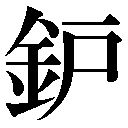 会意兼形声。「金+音符盧ロ(まるくかこんだわく)」。