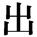 {動}でる(イヅ)。内から外へでる。▽漢文では「でる」という訓は用いない。〈対語〉→入。「出郷関=郷関ヲ出ヅ」「出我胯下=我ガ胯下ヨリ出デヨ」〔→史記〕