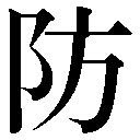 {名}ふせぎ。侵入や破壊をふせぐ備え。「辺防(国境の備え)」「河防策(黄河のはんらんをふせぐ策)」