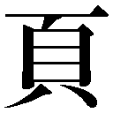 象形。人間の頭を大きく描き、その下に小さく両足をそえた形を描いたもの。頭・額(ひたい)・頷ガン(あご)などの字に、あたまを示す意符として含まれる。
