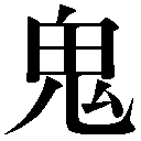{名}おに。死人のおばけ。おぼろげな形をしてこの世にあらわれる亡霊。▽中国では、魂がからだを離れてさまようと考え、三国・六朝以降には泰山の地下に鬼の世界(冥界メイカイ)があると信じられた。「幽鬼」「未能事人、焉能事鬼=イマダ人ニ事フルアタハズ、イヅクンゾヨク鬼ニ事ヘン」〔→論語〕