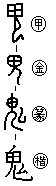象形。大きなまるい頭をして足もとの定かでない亡霊を描いたもの。「爾雅」に「鬼とは帰なり」とあるが、とらない。