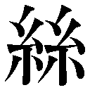 会意。絲は、糸ベキを二つ並べたもので、よりいとのこと。いま、ベキ(糸)をシ(絲)の略字に使って、シと読む。小さく細かい意を含む。