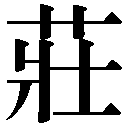 会意兼形声。「艸+音符壯(すらりと長い)」で、草のたけが長くおいたつことで、細長い草ぶきの納屋。また、いなかの農家のこと。転じて、形が整って勢いが盛んである意。