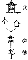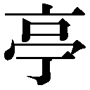 型にたつ建物のこと。亭は停(ひと所に安定してじっとたつ)に含まれる。定(じっとひと所にたつ)とも縁が近い。
