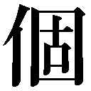 会意兼形声。「人+音符固」で、かたい一つ一つの物を示す。▽个コは、竹一本の姿を描いた象形文字で、古代には一个・二个と書いたが、のち個で代用した。現代中国では、また个を用いるようになった。