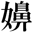 会意。「女+鼻」で、鼻息のあらい女の意か。