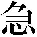 {動}いそぐ。ゆとりがなくせかせかと物事をする。せく。〈対語〉→緩カン・→寛カン。〈類義語〉→忙ボウ・→躁ソウ。「大王急渡=大王急ギ渡レ」〔→史記〕