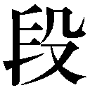会意兼形声。端の右側の字(音タン)は、布の両端を上から下へ垂らしたさま。段はその字の略体を音符とし、殳(動詞の記号)をそえた字で、とんとんと上から下へ足で踏みたたくようにしておりる石段や階段のこと。