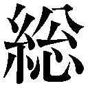 {動}すべる(スブ)。引きしめる。すべてを一つにまとめる。また、すべおさめる。〈類義語〉→綜ソウ。「総合」「総括」「百官総己=百官己ヲ総ブ」〔→論語〕