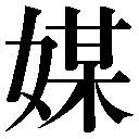 会意兼形声。某ボウ・モウは「口の中に・印を含むさま+木」の会意文字で、梅の実を口にふくむさま。梅と同じ。媒は「女+音符某」で、互いに不明な男女の間にたち理解させようと努めること。▽また、梅は出産を助けるシンボルと考えられたので、男女に子をうませる手引きをする者を媒といったと考えてもよい。