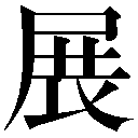 {動}のべる(ノブ)。おしのばす。平らにひろげる。また、転じて、隠れた才能をひろげて見せる。「展開」「始当展其驥足耳=始メテマサニソノ驥足ヲ展ブベキノミ」〔→蜀志〕