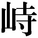 複数辞典一括検索+- (非使用)広辞苑大辞林新辞林大辞泉古語NHK 日本語発音アクセント辞典日国明鏡国語辞典新明解漢字源必携類類義使分大シ英辞郎研究社新英和大辞典ジーニアス英和大辞典ことわざ- (非使用)広辞苑大辞林新辞林大辞泉古語NHK 日本語発音アクセント辞典日国明鏡国語辞典新明解漢字源必携類類義使分大シ英辞郎研究社新英和大辞典ジーニアス英和大辞典ことわざ- (非使用)広辞苑大辞林新辞林大辞泉古語NHK 日本語発音アクセント辞典日国明鏡国語辞典新明解漢字源必携類類義使分大シ英辞郎研究社新英和大辞典ジーニアス英和大辞典ことわざ【峡天】🔗⭐🔉【峡天】 キョウテン 谷あいから見える天。 【峡雨】🔗⭐🔉【峡雨】 キョウウ 谷間に降る雨。「江虹明遠飲、峡雨落余飛=江ノ虹ハ遠飲ニ明ルク、峡雨ハ余飛ニ落ツ」〔→杜甫〕 【峙】🔗⭐🔉【峙】 9画 山部 区点=5421 16進=5635 シフトJIS=9BB3 《音読み》 ジ(ヂ)/チ〈zh〉 《訓読み》 そばだつ 《意味》 {動}そばだつ。じっと動かないで、まっすぐにたつ。〈類義語〉→竢シ。「対峙タイジ」 《解字》 形声。「山+音符寺ジ」。 《単語家族》 待(じっとまつ)侍(じっとたってはべる)植(木が直立する)などと同系。 《熟語》 →熟語 →下付・中付語 【峙立】🔗⭐🔉【峙立】 ジリツ じっとそびえたつ。 【峠】🔗⭐🔉【峠】 9画 山部 [常用漢字] 〔国〕 区点=3829 16進=463D シフトJIS=93BB 《常用音訓》とうげ 《訓読み》 とうげ(たうげ) 《意味》 とうげ(タウゲ)。山道の、上りと下りの境になる頂点。とうげ(タウゲ)。物事の頂点。「病気は峠を越した」 《解字》 会意。「山+上+下」で、日本でつくったもの。 漢字源 ページ 1352。