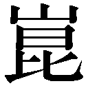 形声。昆コンは、まるい意を含む。崑は「山+音符昆」。コンロンとはまるくつややかな玉のこと。