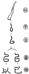 已(やめる)などの用法に分化した。已(やめる)は、止(とまる)・俟イ(とまって待つ)に当てた用法。また、以に当てて用いる。