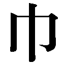 象形。三すじたれさがった布きれを描いたもの。布・帛ハク・帆などに含まれ、布をあらわす記号に用いる。