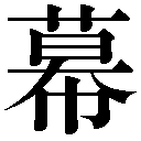 会意兼形声。莫マク・バクは、四つの屮印(草)の間に日が隠れるさまを示す会意文字で、暮の原字。隠れて見えない意を含む。幕は「巾(ぬの)+音符莫」で、物を隠して見えなくするおおい布。→莫