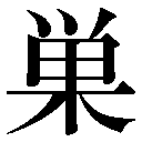 {名}す。木の上に構えた鳥のす。〈類義語〉→栖セイ。「下者為巣=下キ者ハ巣ヲ為ル」〔→孟子〕
