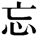 {動}わすれる(ワスル)。記憶が心の中から消え去る。〈対語〉→記。「忘帰=帰ルヲ忘ル」「忘我=我ヲ忘ル」「発憤忘食=発憤シテ食ヲ忘ル」〔→論語〕