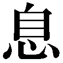 会意。「自(はな)+心」で、心臓の動きにつれて、鼻からすうすうといきをすることを示す。狭い鼻孔をこすって、いきが出入りすること。すやすやと平静にいきづくことから、安息・生息などの意となる。また、生息する意から子孫をうむ→むすこの意ともなる。