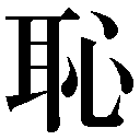 会意兼形声。耳ジ・ニは、柔らかいみみ。恥は「心+音符耳」で、心が柔らかくいじけること。