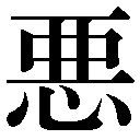 {名}悪いこと。いやな行い。むかつくような状態。〈対語〉→善。「賞善罰悪=善ヲ賞シ悪ヲ罰ス」〔→漢書〕