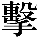 {動}うつ。堅い物をかちんとうち当てる。また、強くたたく。「撃柝ゲキタク」「撃磬=磬ヲ撃ツ」