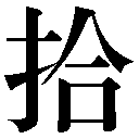 {動}ひろう(ヒロフ)。ひろい集める。また、放置された物を手に入れる。〈対語〉→棄(すてる)。「拾得」「拾遺」