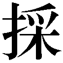 会意兼形声。采サイは「爪(てのさき)+木」からなる会意文字で、手の先で木の芽をつみとるさま。採は「手+音符采」で、采の原義をあらわす。→采