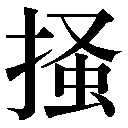 {動}かく。つめでひっかく。また、ひっかく。〈同義語〉→蚤。「掻痒ソウヨウ(かゆい所をつめでかく)」「掻爬ソウハ」
