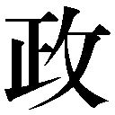 会意兼形声。正とは、止(あし)が目標線の―印に向けてまっすぐ進むさまを示す会意文字。征セイ(まっすぐ進む)の原字。政は「攴(動詞の記号)+音符正」で、もと、まっすぐに整えること。のち、社会を整えるすべての仕事のこと。→正