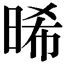 会意兼形声。希とは、すきまのあいた、まばらな布のこと。晞は「日+音符希」で、日光や空気がすきまを通って、物がかわくこと。