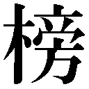 会意兼形声。「木+音符旁ホウ(両側)」で、両側に張り出た板や、両側につっぱるさお。