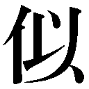 会意兼形声。曲がった木のすきを手に持ったさまを示すのが以の字で、道具を用いて作為を加える意を含む。似は「人+音符以ジ」で、人間が作為や細工を加えて、物の形を整えることを示す。うまく細工して実物と同じ形をつくることから、にせる、にるの意となった。