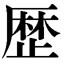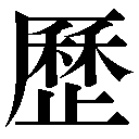 {動}へる(フ)。並んだ点を次々と通る。〈類義語〉→経(へる)。「歴訪」「歴年=年ヲ歴」「歴世弥光=世ヲ歴テイヨイヨ光ル」〔→張衡〕