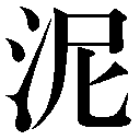 {動}なずむ(ナヅム)。ねちねちとくっついて動きがとれないようになる。「拘泥コウデイ(物事にとらわれて動きがとれない)」「致遠恐泥=遠キヲ致セバ泥マンコトヲ恐ル」〔→論語〕