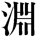 {名}ふち。深い池。また、水の深くたまったところ。「深淵シンエン」「淵源エンゲン」「遂赴汨羅之淵、自沈而死=遂ニ汨羅ノ淵ニ赴キ、ミヅカラ沈ミテ死ス」〔→楚辞〕
