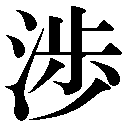 {動}わたる。水のある所を、ひと足ひと足と歩いてわたる。〈類義語〉→渡。「渡渉」「跋渉バッショウ」
