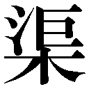 {名}みぞ。両岸の間をあけて、水を通す用水路。「溝渠コウキョ」「河渠カキョ」