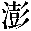 【澎】 15画 水部  区点=6316 16進=5F30 シフトJIS=E04F 《音読み》 ホウ(ハウ)/ビョウ(ビャウ)〈png・png〉 《意味》 「澎湃ホウハイ」とは、水がぼんぼんとぶつかりあう音。また、水のわきたつさま。 《解字》 会意兼形声。「水+音符彭ホウ(ふくれる、ぼんと音を出す)」。 《熟語》 →下付・中付語
