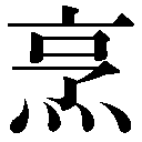 会意。亨キョウは、上半の高い家と下半の高い家とが向かいあったさまで、上下のあいかようことを示す。烹は「火+亨(上下にかよう)」で、火でにて、ゆげが上下にかよい、しんまで通ることを示す。にえた物が柔らかくふくれるの意を含む。