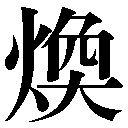 {形}あきらか(アキラカナリ)。火の光がまるく四方に広がりかがやくさま。「煥乎カンコ(かがやかしい)」「煥乎其有文章=煥乎トシテソレ文章アリ」〔→論語〕