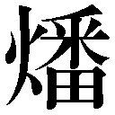 会意兼形声。番ハンは「釆(たねをまきちらしたさま)+田(はたけ)」の会意文字で、播(まく)の原字。燔は「火+音符番」で、火の粉をちらしたり火が広がったりしてもえること。平らに広がるの意を含む。