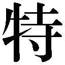 {形・名}とりわけすぐれたさま。それだけ目だったさま。とくにすぐれたもの。また、かけがえのないつれあい。「特長」「特点」「百夫之特(人々のかしら)」〔→詩経〕