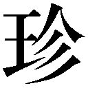 {名}上等なもの。また、めったにないごちそう。「珍肴チンコウ(たいしたごちそう)」「席上之珍セキジョウノチン(客に見せるたから→まだ任用されない英才)」