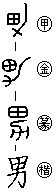 {名}おとこ(ヲトコ)。人のおす。〈対語〉→女。「男性」「男女授受不親=男女授受スルニハ親シクセズ」〔→孟子〕