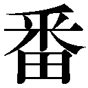 {名・形}外国人。また、外国産である。〈同義語〉→蕃。「番舶(外国船)」「番茄バンカ(外国から来たトマト)」