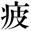 {動・形}つかれる(ツカル)。しゃんと直立できず、ぐったりと曲がってしまう。ぐったりとなえる。くたびれる。また、ぐったりしたさま。〈同義語〉→罷。〈類義語〉→弊・→倦ケン。「疲労困憊ヒロウコンパイ」「疲弊」